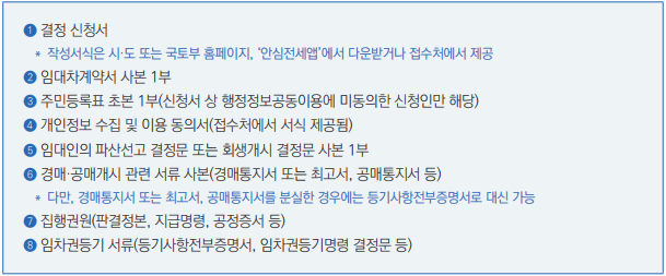 - 신청장소 : 임차인 주민등록상 거주(피해주택) 소재지 관할 시·도(*거주지를 이전한 경우 피해주택 지역 관할 시·도에서 신청 가능)